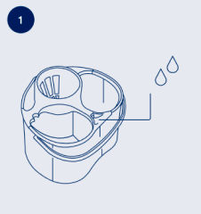 Llena de agua el cubo por el orificio central. El sistema reparte el agua automáticamente.